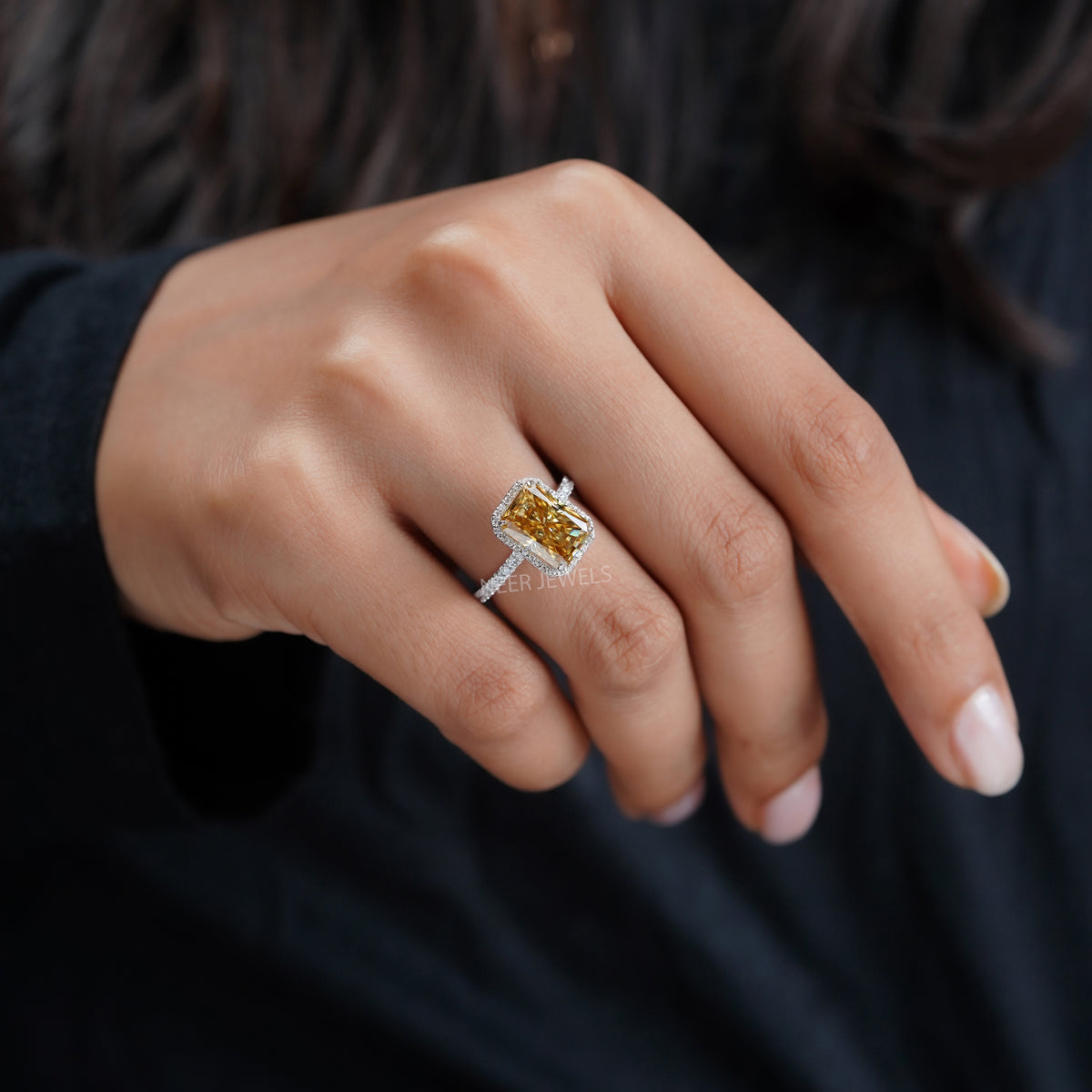 Canary Yellow Radiant Cut Moissanite Engagement ring