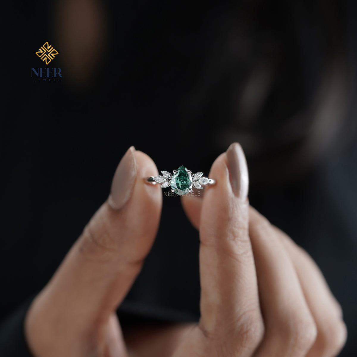 Cyan Blue Pear Moissanite Engagement Ring,Anniversary Gift Ring - 6 / Silver