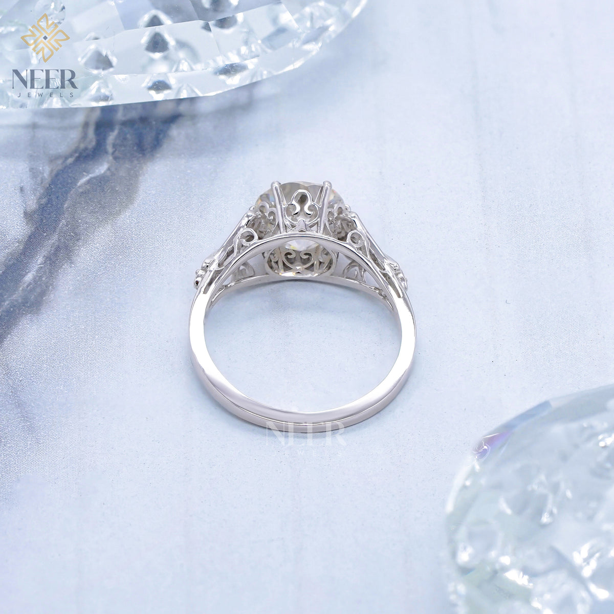 Old European Round cut unique wedding ring,Engagement Ring for her,Anniversary Gift Ring - 6 / Silver